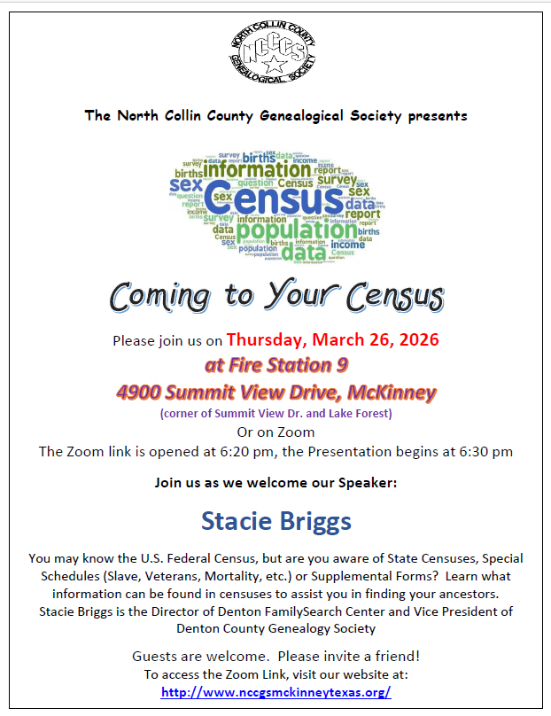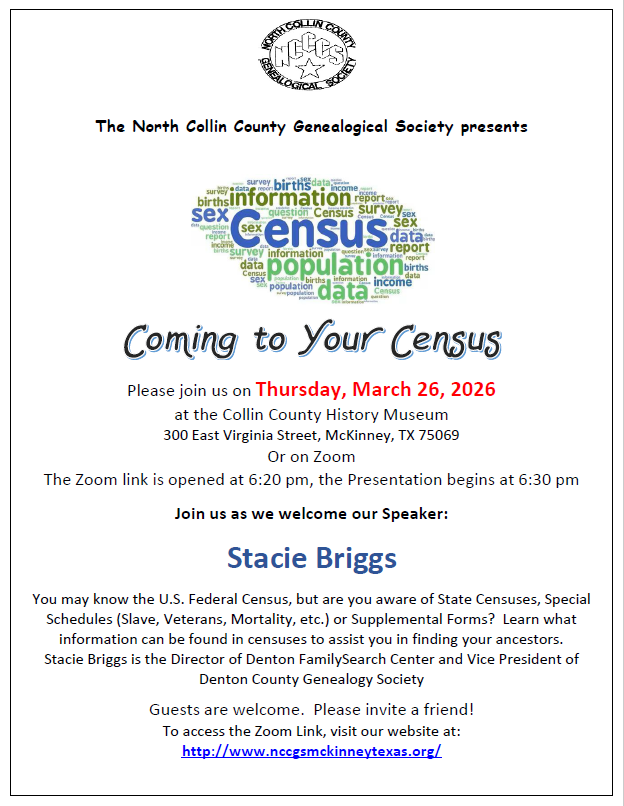 North Collin County Genealogy Society Monthly Program